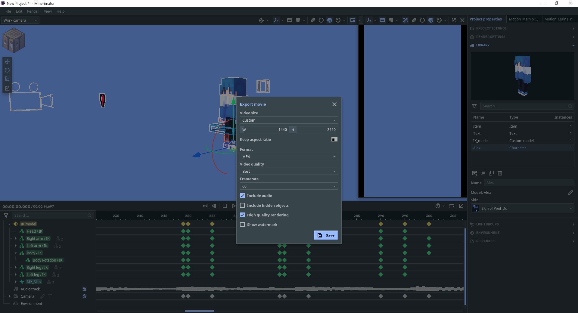 해당 파일을 "마인이메이터"에 불러오시면 대부분 작업은 끝입니다.